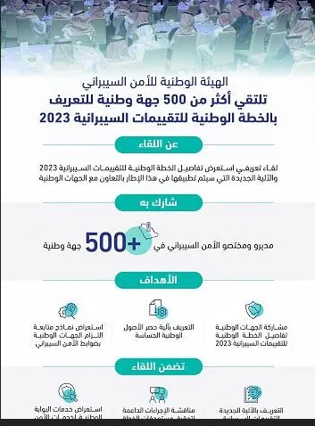 هيئة الأمن السيبراني تلتقي أكثر من 500 جهة وطنية للتعريف بالخطة الوطنية للتقييمات السيبرانية لعام 2023م